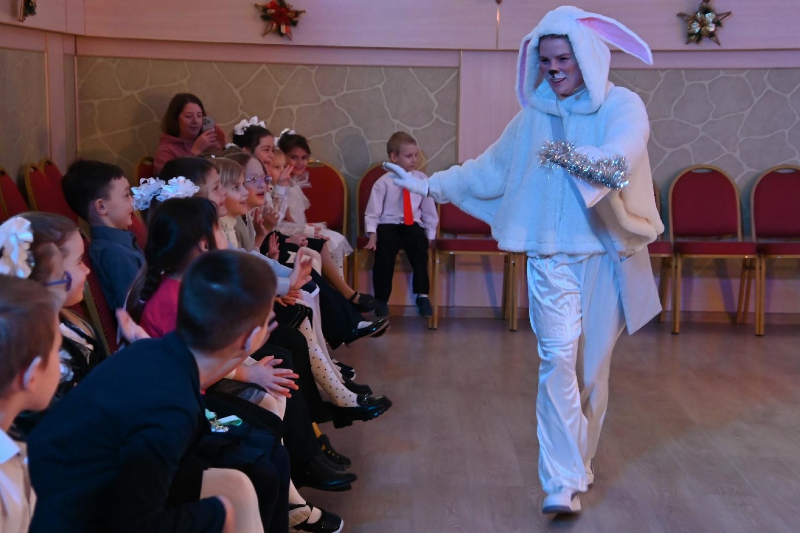 В ДК «Меридиан» волшебство - каждый день. На программе «Новогодние приключения Маши и Зайца» школьники младших классов отправились в путешествие, полное интересных испытаний.