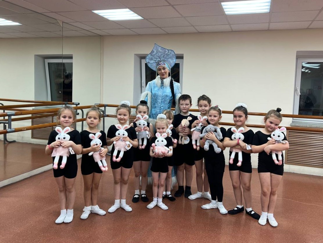 И, конечно, не обошлось без настоящего новогоднего чуда: маленьким танцорам Снегурочка передала от Дедушки Мороза целый мешок с мягкими пушистыми зайчатами!